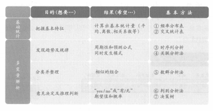 統(tǒng)計(jì)的分析方法各種各樣,僅應(yīng)用于營(yíng)銷的,就有50種左右。在這些方法中,選擇一個(gè)適合的并非易事。根據(jù)不同目的,我們列舉代表性的幾種方法如下。
