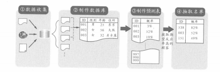 顧客行動(dòng)模式是企業(yè)基于顧客屬性、購(gòu)買行為等過(guò)去的信息做成的、預(yù)測(cè)顧客將來(lái)行動(dòng)方式的數(shù)學(xué)公式o以這個(gè)數(shù)學(xué)公式為基礎(chǔ),算出顧客(以及潛在顧客)的期望反應(yīng)率,然后再抽取期望反應(yīng)率高的顧客制作成電話外呼對(duì)象的顧客名單。大致來(lái)說(shuō),制作出期望反應(yīng)率高的名單需要以下4個(gè)步驟: