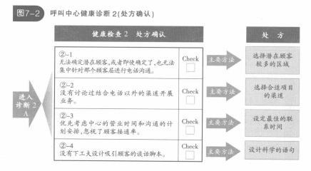 1,把握現(xiàn)狀;2.了解阻礙成功的因素;3.確認(rèn)適當(dāng)?shù)奶幚矸椒?。然后根?jù)各自呼叫中心的情況,靈活地而不是勉強(qiáng)地運(yùn)用這些方法與策略。那么,大家應(yīng)該怎樣把握呼叫中心的情況,怎樣發(fā)現(xiàn)阻礙因素,確認(rèn)應(yīng)對(duì)方法呢?在本章中,將重點(diǎn)對(duì)此進(jìn)行介紹(見(jiàn)圖7-1、圖7-2)。