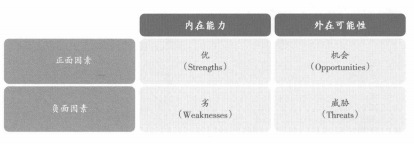 市場(chǎng)環(huán)境分析常用的是SWOT分析法。SWOT分析法可以評(píng)估企業(yè)的優(yōu)勢(shì)(Strengths)、劣勢(shì)(Weaknesses)等內(nèi)在能力,和潛伏在與企業(yè)相關(guān)的外部環(huán)境中的機(jī)會(huì)(Opportunities)與威脅(Threats),即外在可能性。然后篩選一些策略,使得內(nèi)在能力和外在可能性能夠匹配。用SWOT分析市場(chǎng)環(huán)境,然后在分析的結(jié)果上制定戰(zhàn)略的方向。