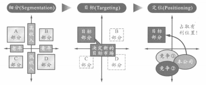 戰(zhàn)略方向定下來(lái)之后,就可以確定誰(shuí),有哪些需要,針對(duì)這些需要應(yīng)該發(fā)布哪些信息等這些最基礎(chǔ)的內(nèi)容。這個(gè)時(shí)候,最有效的方法是STPo即把市場(chǎng)細(xì)分成若干個(gè)部分(Segmentation),制定出有針對(duì)性的市場(chǎng)目標(biāo)及對(duì)應(yīng)的詳細(xì)可行的目標(biāo)細(xì)節(jié)(Targeting),然后決定企業(yè)或商品的形象、設(shè)計(jì)等,使其能夠在目標(biāo)客戶(hù)心目中獲得獨(dú)特的位置(Positioning)o