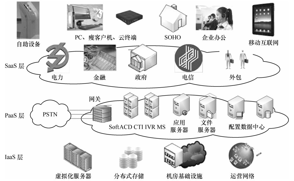 平臺云涵蓋了IaaS、PaaS、SaaS。在IaaS層面,平臺云可部署在虛擬機或資源池上。在PaaS層面,平臺云包括了云聯(lián)絡(luò)中心的核心功能組件,包括軟排隊機、多媒體網(wǎng)關(guān)、CTI、IVR、MS、ASR/TTS、錄音設(shè)備等,并支持組件的分布式部署。平臺云通過PaaS接口、PaaS中間件、PaaS業(yè)務(wù)/應(yīng)用圖形化開發(fā)環(huán)境多種方式,將平臺云的能力封裝為開放的PaaS服務(wù),提供給企業(yè)用戶/開發(fā)者/業(yè)務(wù)方/運營商,方便業(yè)務(wù)/應(yīng)用快速開發(fā)部署。在SaaS層面,平臺云為企業(yè)用戶/運營商,提供會話相關(guān)的基礎(chǔ)呼叫中心業(yè)務(wù),包括外呼服務(wù)、坐席應(yīng)用、多租戶服務(wù)等,如圖所示。