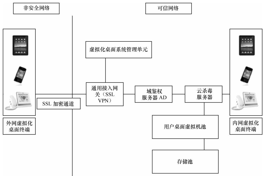 ①外網(wǎng)桌面用戶接入加密,確保系統(tǒng)接入安全性。