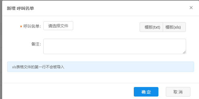 客戶資料文件導(dǎo)入:該操作從文件中批量導(dǎo)入號碼。點擊文件導(dǎo)入,選擇號碼文件,填寫備注,點擊確認,呼叫名單添加成功,如下圖所示。