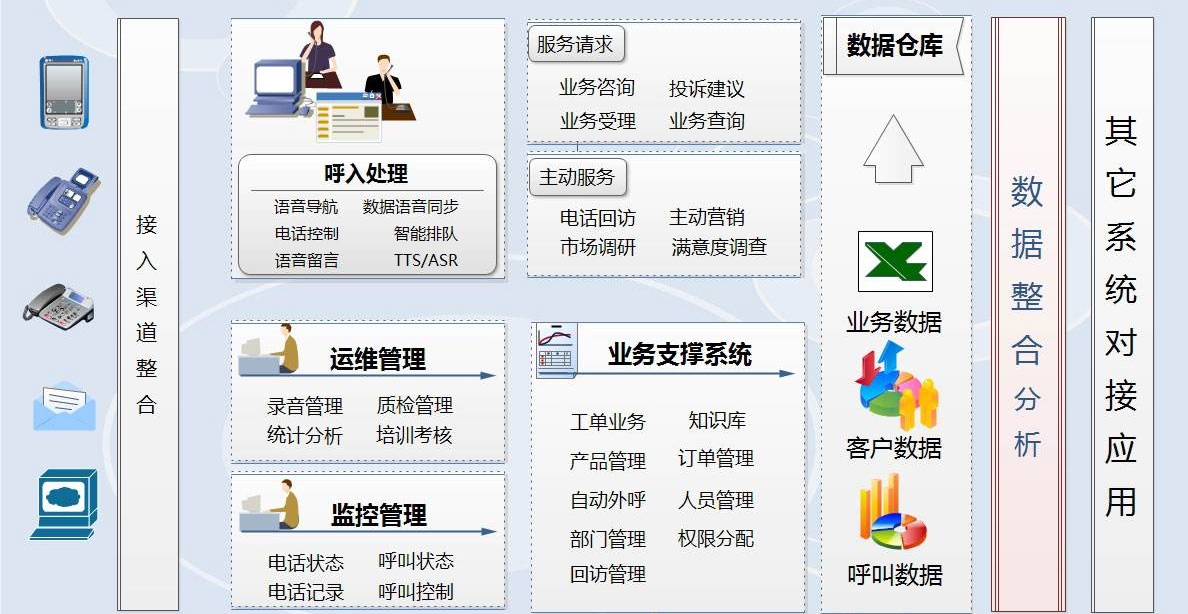呼叫中心系統(tǒng)充分利用VXML的流程定義能力,對VXML腳本進行簡單的升級,用文本菜單方式替代語音文件播報,輕松實現(xiàn)了全業(yè)務(wù)IVR流程定義——基于數(shù)據(jù)的自動交互式應(yīng)答。同時,基于升級的VXML腳本語言,一套流程定義即可用于語音類業(yè)務(wù)交互,也可以用于消息類業(yè)務(wù)的交互,使得兩者的交互實現(xiàn)統(tǒng)一,可極大地方便語音、多媒體統(tǒng)一平臺的自動流程設(shè)計與編輯。
