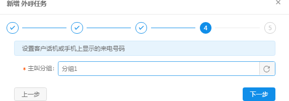 ④指定群呼任務(wù)的主叫號碼分組,如下圖,點擊下一步;