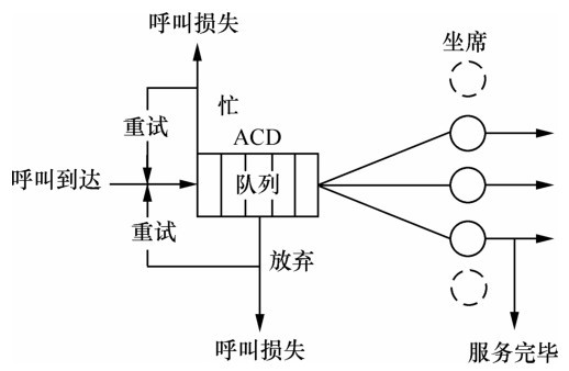 所有的呼叫中心都可簡單地抽象的排隊模型如圖所示: