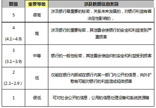 如要對客戶數(shù)據(jù)進行管理,首先需將客戶數(shù)據(jù)進行風險等級及人員訪問權(quán)限劃分。目前交通銀行信用卡涉及的客戶數(shù)據(jù)一般按照CIA標準進行資產(chǎn)等級重要性劃分,即Confidentiality(保密性)、Integrity(完整性)和Availability(可用性),并按照客戶資產(chǎn)信息等級進行1~5取值劃分,即5分為最高等級,1分為最低等級(如表2)。