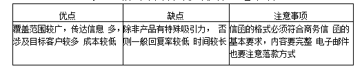 客戶(hù)介紹公司產(chǎn)品或者服務(wù),以及訂購(gòu)和聯(lián)系的方式,以便尋找客戶(hù)。該方法優(yōu)缺點(diǎn)和注意事項(xiàng)如表3-5所示。