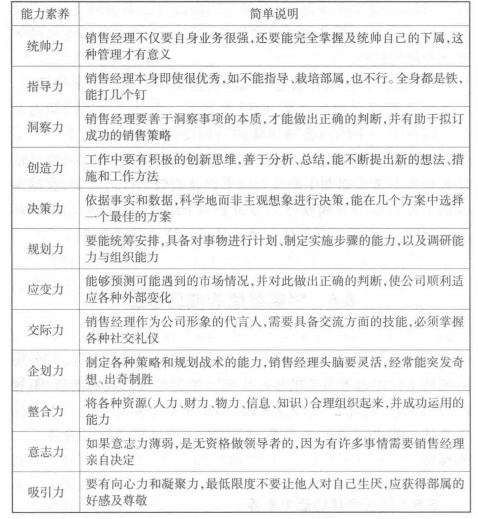 表6-16銷(xiāo)售經(jīng)理的能力素養(yǎng)