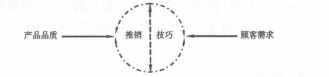 推銷員配合顧客觀念是克士格(BarryJ.Hersker)在1970年所提出來的,他認為有效推銷技巧的表現(xiàn),須使推銷員能將其獨特商品配合準顧客的需要,將產(chǎn)品品質與觀察到的顧客需求作為有效推銷表現(xiàn)的要素。推銷員配合顧客觀念可用圖3-1來表示。