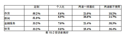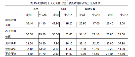 表15-1定制與個(gè)人化價(jià)值比較(以受訪者所占百分比為單位)