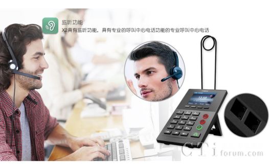 支持標準RJ9接口耳機以及Plantronice EHS無線耳機,同時具有呼叫中心監(jiān)聽的功能