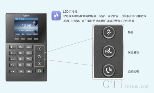 按鍵LED狀態(tài)顯示通話靜音,通話保持,自動應答,耳機