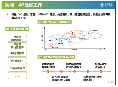 4G遷移工作我們已經(jīng)做了兩個月,基本上包括線上、線下的所有渠道,目前我們客服中心在呼入渠道上的轉(zhuǎn)換比例占60%,來自純電商即互聯(lián)網(wǎng)渠道的轉(zhuǎn)換比例大約為20%,加起來80%左右,線下所有的營業(yè)廳加起來只占了20%。這個案例說明,呼入營銷,也即服務(wù)中的營銷已經(jīng)超過半壁江山。在服務(wù)過程產(chǎn)生二次銷售,促進(jìn)客戶二次購買的方式大有可為。所以說沒有銷售的銷售是最好的銷售,換句話說,服務(wù)中的銷售是最好的銷售。