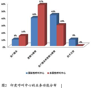 印度的聯(lián)絡(luò)中心可分為兩類:一類面向國際市場,另一類服務(wù)本國市場。如班加羅爾等6個(gè)城市的60家聯(lián)絡(luò)中心中,74%(44家)專門服務(wù)于國際市場,26%(16家)服務(wù)于本國市場。