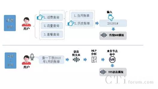 智能語音IVR:在電信運(yùn)營商的傳統(tǒng)IVR,菜單都是固定的,如查詢話費(fèi)請按1,查詢流量請按2;然后按完1以后,語音會(huì)繼續(xù)提示:查詢當(dāng)月話費(fèi)賬單請按1,查詢歷史請按2;你按完2以后,會(huì)提示你請用輸入你想要查詢的月份數(shù)字,一大堆按鍵讓你暈頭轉(zhuǎn)向。那么引入智能語音IVR以后,用戶便可省去繁瑣的按鍵,直接用說話替代按鍵(如圖4)。