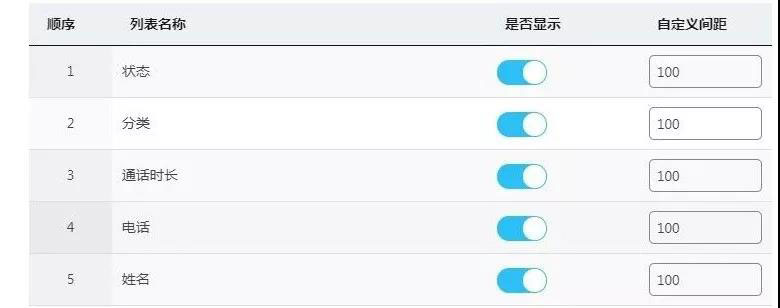 顯示包括:操作、狀態(tài)、分類、通話時長、電話、姓名、標(biāo)簽、分值、公司地址、客戶備注、通話結(jié)果、通話時間、創(chuàng)建人、子賬號、任務(wù)名稱、模板名稱、問題互動次數(shù)、轉(zhuǎn)人工分機號等20多個列表標(biāo)簽。