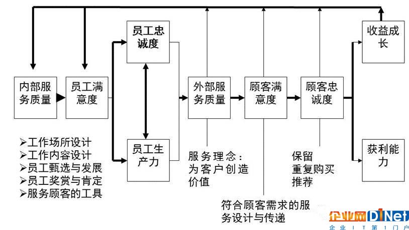 服務(wù)利潤(rùn)鏈(如圖1)告訴我們,利潤(rùn)是由客戶的忠誠(chéng)度決定的,忠誠(chéng)的客戶(也是老客戶)給企業(yè)帶來(lái)超常的利潤(rùn)空間;客戶忠誠(chéng)度是靠客戶滿意度取得的,企業(yè)提供的服務(wù)價(jià)值(服務(wù)內(nèi)容加過(guò)程)決定了客戶滿意度;最后,企業(yè)內(nèi)部員工的滿意度和忠誠(chéng)度決定了服務(wù)價(jià)值。