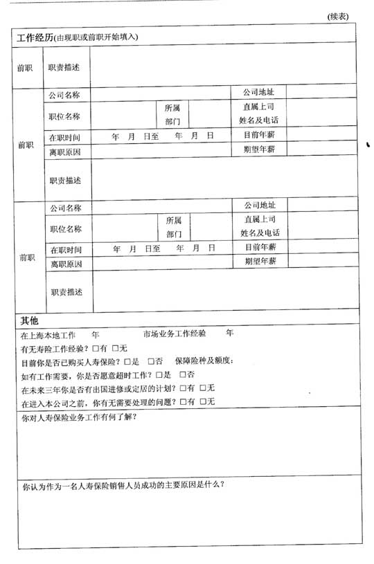 表 所示是某保險(xiǎn)公司電話營銷職位的申請(qǐng)表