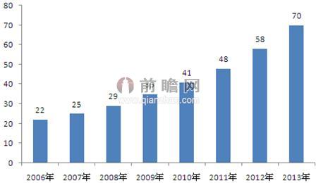 圖表2:2006-2013年中國呼叫中心產(chǎn)業(yè)坐席數(shù)變化趨勢(單位:萬個)