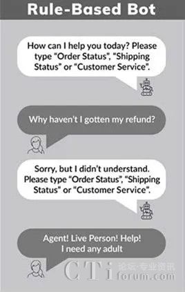 現(xiàn)在聊天機器人無處不在,你可能已經注意到你遇到的聊天機器人有著廣泛的功能。最簡單的是不使用任何人工智能的聊天機器人,它們依賴定義的規(guī)則來指導自己的行為。這些聊天機器人無法處理超出其編程范圍的任何事情,這有時會導致如下不幸的交互: