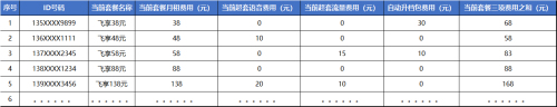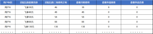 - 每當有新的資費產品加入時,可直接在資費套餐產品配置表中添加新套餐,節(jié)省模型開發(fā)上線時間。示例見下: