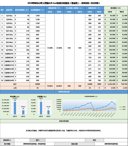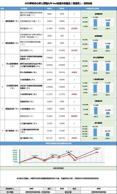 - 使用A/Btest方法進行對比評價,A樣本為使用新模型數(shù)據(jù)分析結果的呼入營銷數(shù)據(jù),B樣本為使用舊模型數(shù)據(jù)分析結果的呼入營銷數(shù)據(jù)。