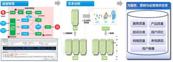 使用NLP(自然語言處理)工具,將用戶通話語音轉(zhuǎn)譯成可視、可檢索、可分析的文字,實(shí)現(xiàn)用戶通話錄音由聽轉(zhuǎn)看,并可進(jìn)行后續(xù)一系列的挖掘分析和數(shù)據(jù)應(yīng)用。