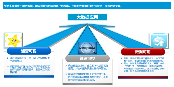 價(jià)值傳導(dǎo)是指:借助大數(shù)據(jù)分析技術(shù),從海量用戶聲音中(尤其是用戶投訴)提煉價(jià)值信息,并傳遞至公司相關(guān)部門,為產(chǎn)品創(chuàng)新、營銷完善、網(wǎng)絡(luò)優(yōu)化、服務(wù)提升等提供價(jià)值信息。