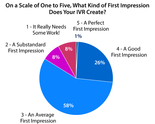 我們邀請(qǐng)了176位聯(lián)絡(luò)中心專業(yè)人員組成的小組:以1到5的分?jǐn)?shù)計(jì)算,您的IVR會(huì)產(chǎn)生什么樣的第一印象?五分等于完美的印象,一分意味著它確實(shí)需要再做一些工作!
