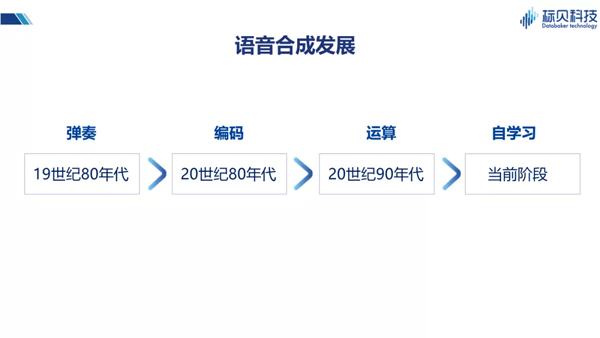 語音合成的歷史可以說是相當悠久。最初,實際上是通過類似于鋼琴一樣的設備來彈奏,能夠發(fā)出幾個聲音,大家就已經(jīng)覺得非常厲害。隨著計算機技術(shù)的發(fā)展,從80年代到90年代再到現(xiàn)階段,技術(shù)的迭代更新也越來越快。