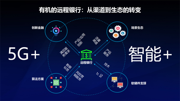 而互聯(lián)網(wǎng)和5G起的作用是將我們銀行的觸點(diǎn)變成觸角。我們以前的營(yíng)銷觸點(diǎn)人工智能能力、增加了多媒體全渠道聯(lián)絡(luò)能力后就可以把觸點(diǎn)變成觸角不停延伸,大腦也可以不停地變聰明,完成從渠道到生態(tài)的轉(zhuǎn)變,從基于規(guī)則到完全基于智能化的改變,完成從傳統(tǒng)銀行到未來(lái)銀行的轉(zhuǎn)變,讓我們的銀行變成有機(jī)的銀行。