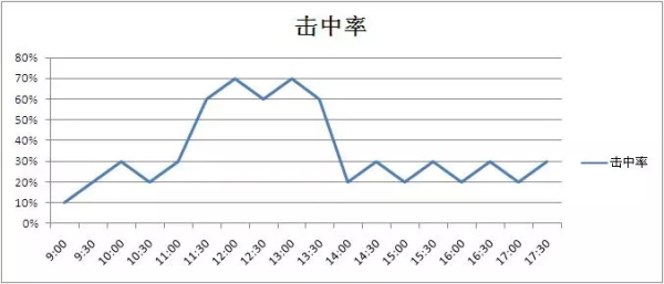 在這個項目中,隨著時間,擊中率變化比較大,在11點到14點這段時間,擊中率明顯要比其他時間高很多。