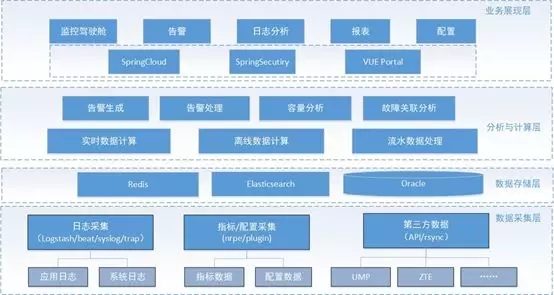 通過代理、接口、syslog、snmp等采集方式收集日志與告警信息,實時展示客服系統(tǒng)運行狀態(tài)和關(guān)鍵指標數(shù)據(jù)。監(jiān)控采集方式由被動的輪詢式告警轉(zhuǎn)變?yōu)橹鲃油扑偷牧魇礁婢?,專業(yè)監(jiān)控平臺雖然可以解決80%的告警需求,但還有一些特殊化的需求還不能覆蓋,比如陡增突降告警、同比環(huán)比等復(fù)雜的需要經(jīng)過統(tǒng)計運算的告警、智能化故障診斷及業(yè)務(wù)關(guān)聯(lián)影響分析等。