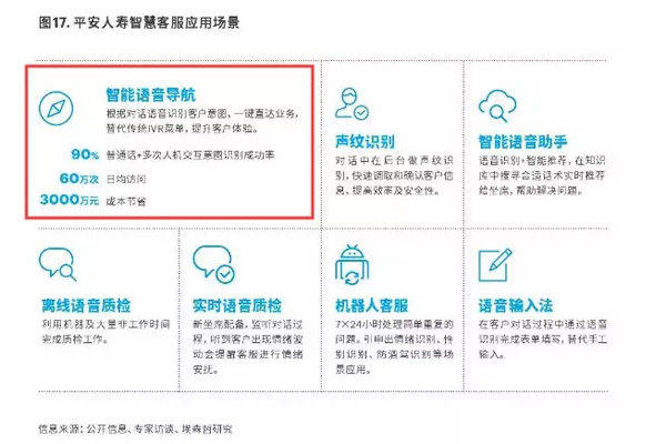 來自螞蟻金服埃森哲的2019年新客服白皮書報告,2017年智能客服為平安人壽節(jié)約3000萬人力成本,每天處理用戶60多萬人次,解決率達到90%。