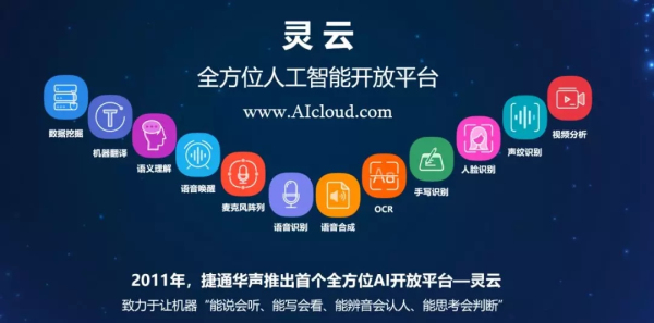 2011年,捷通華聲推出國內(nèi)外首個全方位AI開放平臺—靈云,致力于讓機器能說會聽、能寫會看、能辨音會認人、能思考會判斷。