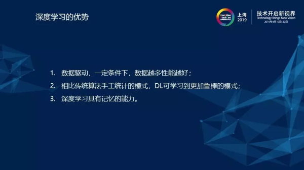 2)相比傳統(tǒng)算法手工統(tǒng)計(jì)的模式,深度學(xué)習(xí)可以學(xué)到更加魯棒的模式。對(duì)于傳統(tǒng)算法的調(diào)參是十分麻煩的,例如我們看過的有一些競品算法公司調(diào)參,參數(shù)大概有幾百個(gè),在對(duì)接廠商的時(shí)候需要將參數(shù)逐一調(diào)整,以實(shí)現(xiàn)不錯(cuò)的效果,這中間的工作量非常大。但是,這幾百個(gè)參數(shù)跟深度學(xué)習(xí)相比就太少了,深度學(xué)習(xí)的參數(shù)量基本上是百萬規(guī)模的,甚至是千萬規(guī)模的。因此,手工統(tǒng)計(jì)的那些參數(shù)所包含的信息,它所擬合的模型的建模能力跟深度學(xué)習(xí)是不可比擬的,因此深度學(xué)習(xí)相比于傳統(tǒng)算法,它學(xué)到的模式更加魯棒。3)深度學(xué)習(xí)有記憶的能力。對(duì)于深度學(xué)習(xí)來說,一定程度上,見過的數(shù)據(jù)越豐富,效果越好。