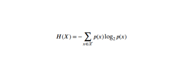 其中,X代表一個(gè)離散型隨機(jī)變量,p(x)為其概率分布函數(shù)。當(dāng)對數(shù)函數(shù)以2為底時(shí),熵的單位是比特。熵的大小不取決于X的實(shí)際值,而僅依賴其概率分布。這個(gè)公式也被稱為香農(nóng)熵。