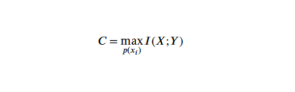 信道容量是指該信道中,每個(gè)字符平均能傳送的最大信息量,信道容量等于輸入與輸出的互信息的最大可能值。