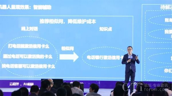 首先是系統(tǒng)完成集成后的效果,我們基于圖譜標簽的上下文關(guān)聯(lián)的功能實現(xiàn)了多輪會話,使它能夠更接近于我們正常的溝通方式。比如當用戶首先咨詢跟信用卡相關(guān)的問題,當他再次咨詢手機銀行的時候,我們會把問題圈定在手機銀行申請信用卡的環(huán)境里面對他進行識別。當用戶再問起來激活的時候,機器人會理解為手機銀行信用卡激活的問題。