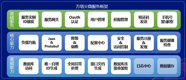 其余諸如分配服務(wù)、業(yè)務(wù)數(shù)據(jù)服務(wù)、AI能力服務(wù)等,均以微服務(wù)API的方式在平臺內(nèi)部暴露。為此,我們搭建了一套名為方塔尖的微服務(wù)框架來提供基礎(chǔ)設(shè)施的支持。