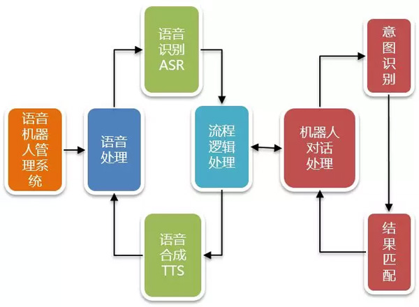 對話機器人在我們的客服平臺中分為語音機器人和在線IM機器人。語音機器人的服務(wù)對象是IVR(交互式語音應(yīng)答),即電話的呼入呼出IVR場景。其處理流程如下: