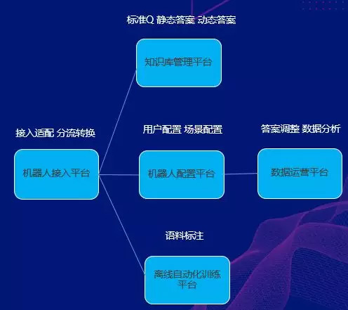 在線IM機器人主要對接的是IM、微信等即時通信和社交媒體渠道,從廣義上可以理解為我們常見的聊天機器人范疇,只不過在客服系統(tǒng)中,其模型是針對專有業(yè)務(wù)場景進行訓(xùn)練的。因此,相較于通用聊天機器人,在線IM機器人其實更容易達(dá)到比較好的智能交互效果。其整體模塊結(jié)構(gòu)如下: