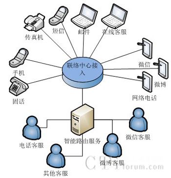 從聯(lián)絡(luò)中心接入方式來看,聯(lián)絡(luò)中心不僅僅局限于接入固話、手機、傳真、短信、郵件等傳統(tǒng)的通訊渠道,而更應(yīng)該接入互聯(lián)網(wǎng)環(huán)境下的在線客服、微信、微博、網(wǎng)絡(luò)電話等新的通訊渠道。