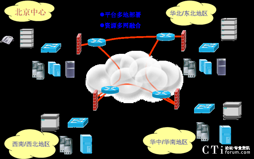 多套獨(dú)立的呼叫中心接入平臺(tái)實(shí)現(xiàn)資源的共享,對(duì)外呈現(xiàn)統(tǒng)一的大容量呼叫中心接入平臺(tái)。平臺(tái)共享包括:負(fù)載均衡、資源虛擬化等。資源云化資源云化資源云化資源云化,物理上多套獨(dú)立的呼叫中心平臺(tái)組成共享資源池(CTI Pool),對(duì)外呈現(xiàn)為一套超大容量的呼叫中心邏輯平臺(tái),各部件支持獨(dú)立部署、虛擬化、資源動(dòng)態(tài)伸縮,實(shí)現(xiàn)話務(wù)分發(fā)及服務(wù)資源的集中化統(tǒng)一管理和均衡。