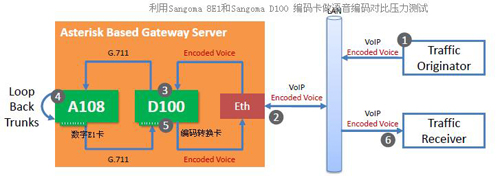 圖例 1:Sangoma A108/D100/SIPp語音編碼測試流程圖