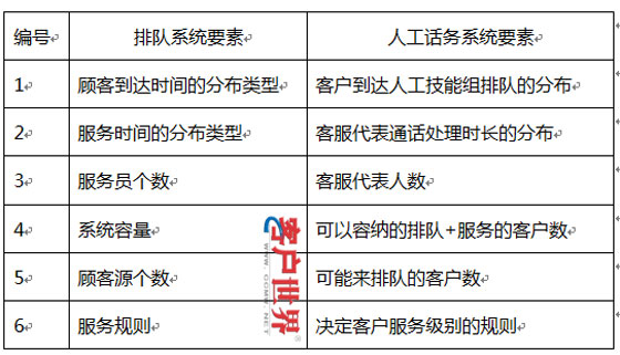 呼叫中心的電話系統(tǒng)是一個(gè)典型的排隊(duì)系統(tǒng),它由下表中的六要素組成(如表2):