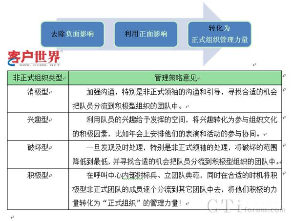 呼叫中心內(nèi)部非正式組織的管理策略: