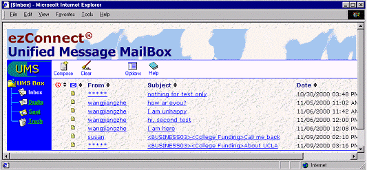 ezConnect的統(tǒng)一信息處理系統(tǒng)可以在同一個(gè)界面處理客戶交互請(qǐng)求,例如文字信息、網(wǎng)頁(yè)表格、電子郵件、語(yǔ)音郵件和傳真。從同一個(gè)UMS信箱,呼叫中心座席可以: